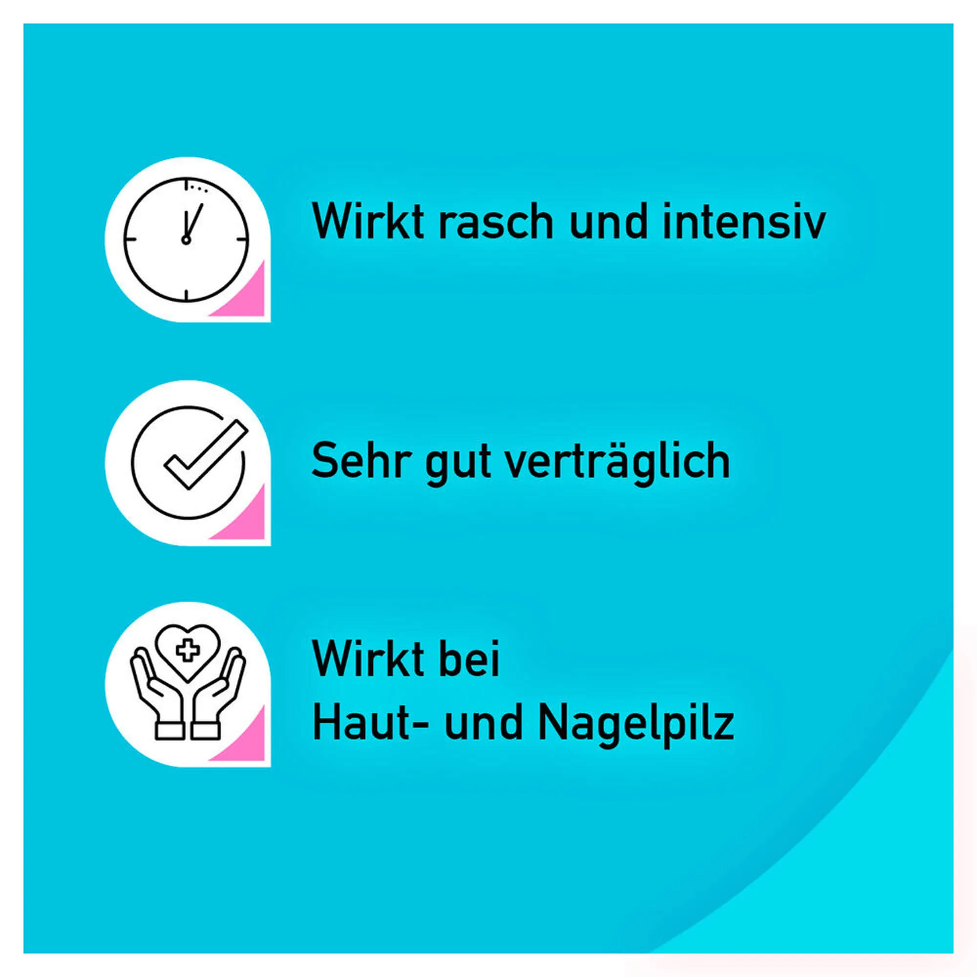 Ingredientul activ deteriorează învelișul exterior, așa-numita membrană celulară a ciupercilor. Acest înveliș își pierde astfel unele dintre funcțiile sale, de exemplu devine mai impermeabil la nutrienți – celula moare de foame. În funcție de concentrația ingredientului activ, ciupercile sunt inhibate în creșterea și reproducerea lor sau mor direct din cauza deteriorării suplimentare a interiorului celulei. Ingredientul activ este, de asemenea, eficient împotriva anumitor bacterii și are proprietăți antiinflamatorii suplimentare.